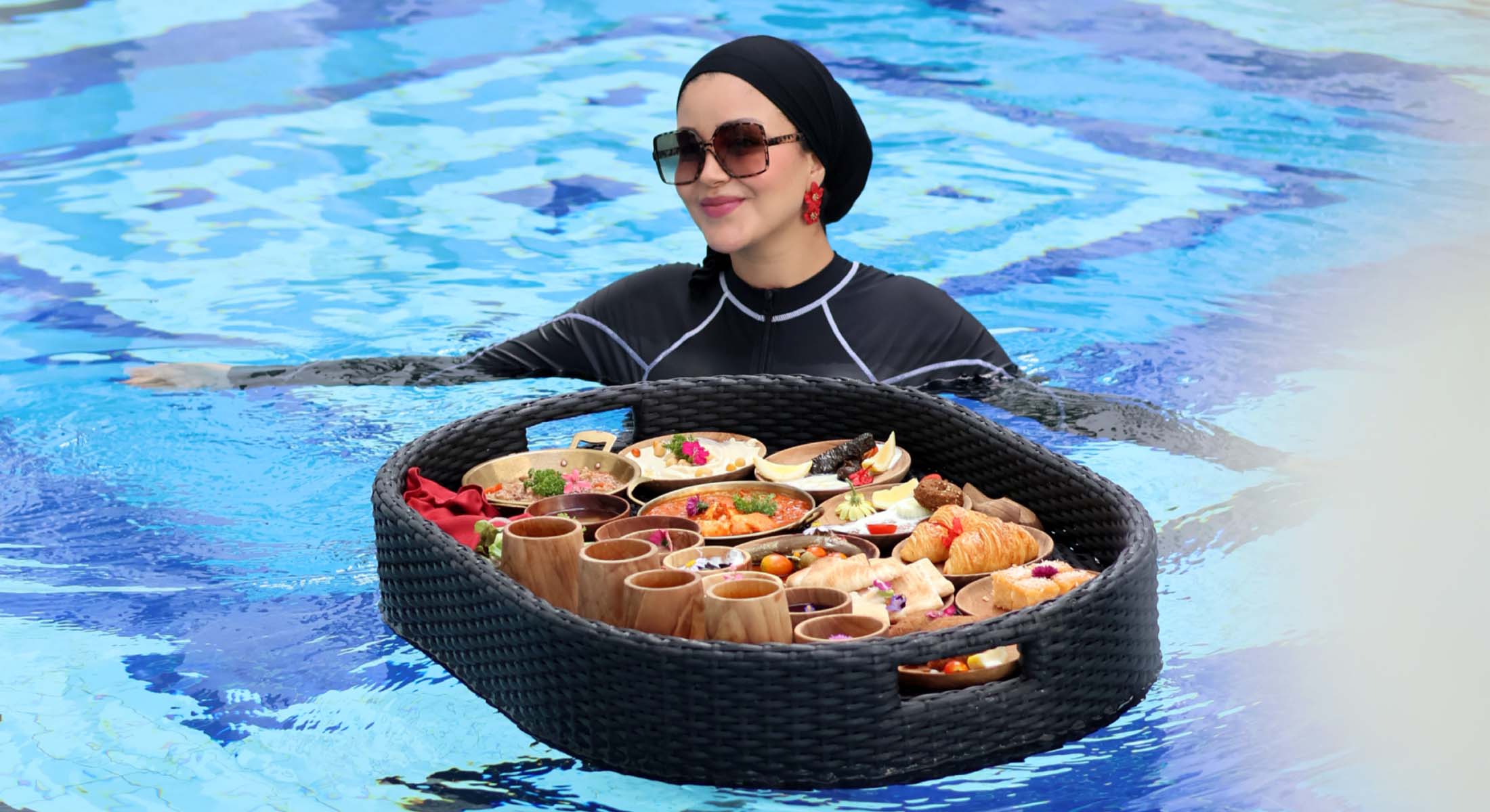 Experience a refined morning ritual with the Arabian Morning Floating Breakfast at Mövenpick Myth Hotel Patong Phuket — a luxurious, Halal-certified breakfast served on an elegant floating tray in the privacy of your own pool. Thoughtfully designed for Middle Eastern travellers and guests seeking cultural comfort with elevated hospitality, this exclusive experience blends authentic flavours with serene poolside indulgence.